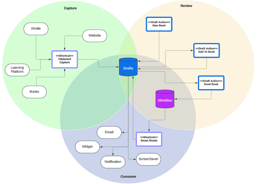 RKC’s Capture-Review-Consume cycle offers an efficient, scientific approach to knowledge retention. With the clever use of iOS shortcuts, Drafts, and Obsidian, this system is adaptable, allowing you to scale or modify it based on your needs. The result is a simple yet powerful way to enrich your learning, keeping valuable insights accessible, organized, and ever-present.